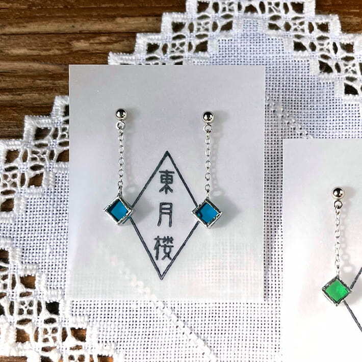 小さなビビッドカラーの透明ガラスが耳元を彩ります。