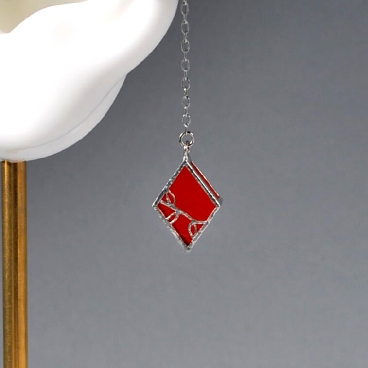 シャープなひし形に蔦のような植物をイメージした装飾カットを施しています。サイドの隙間から見える色も魅力です。